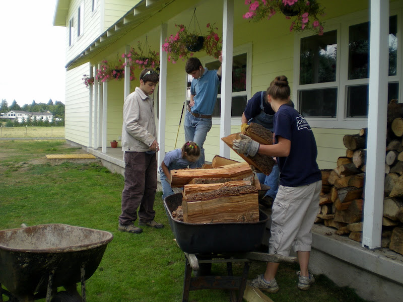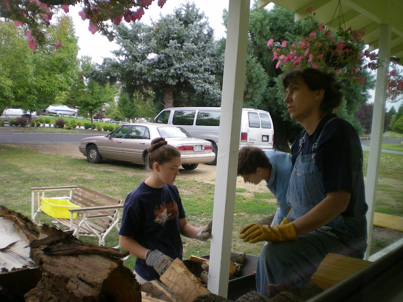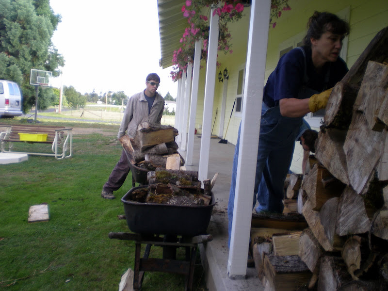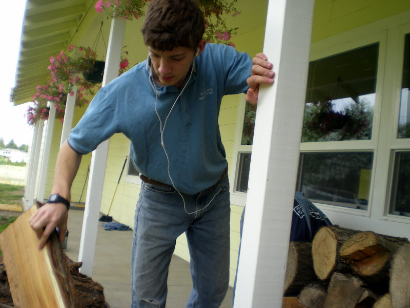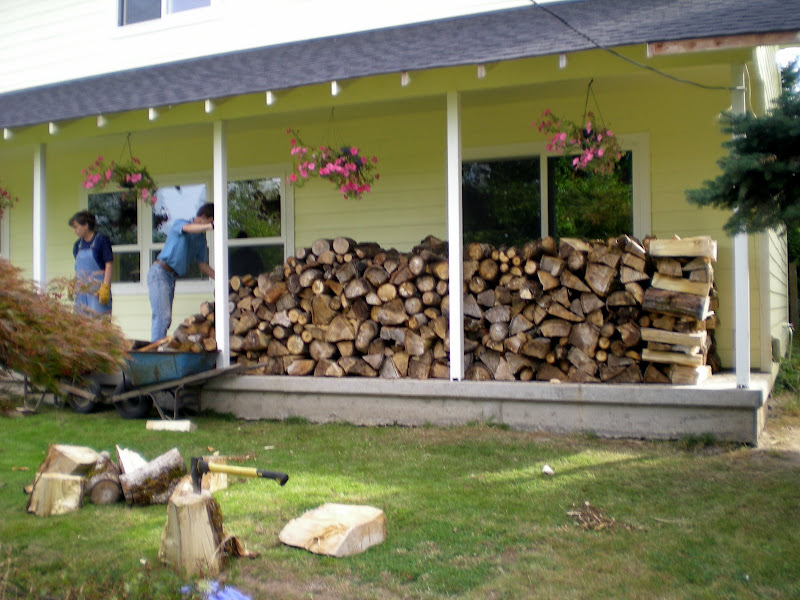 taking the wood to the front porch