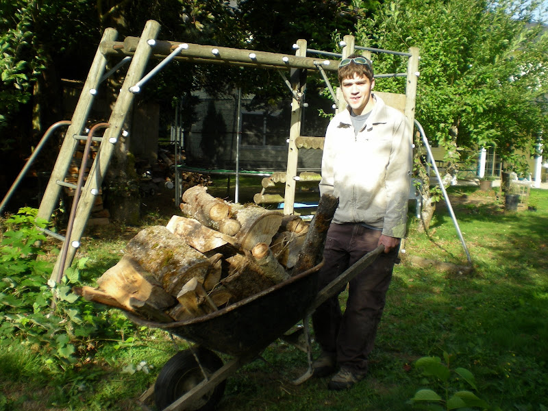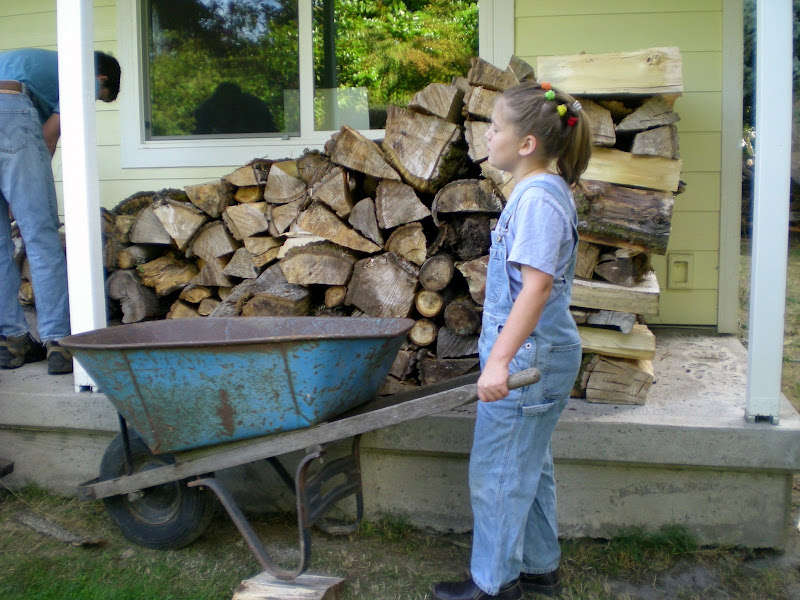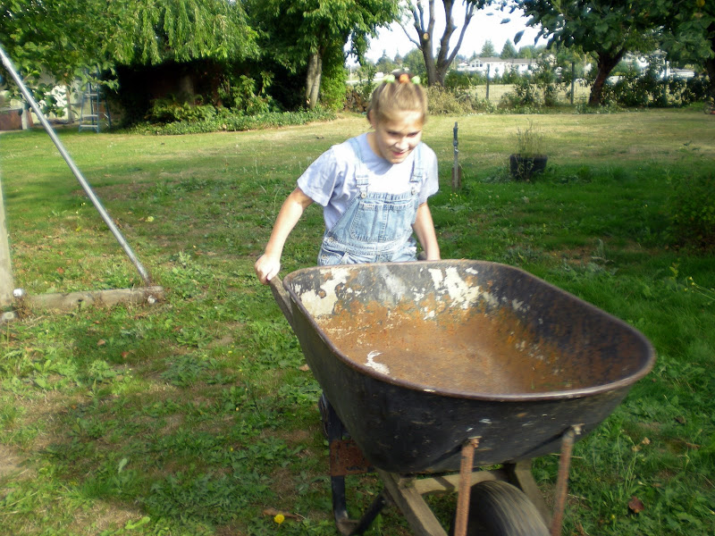 taking the empty wheelbarrows to Ruth & Hannah to be filled